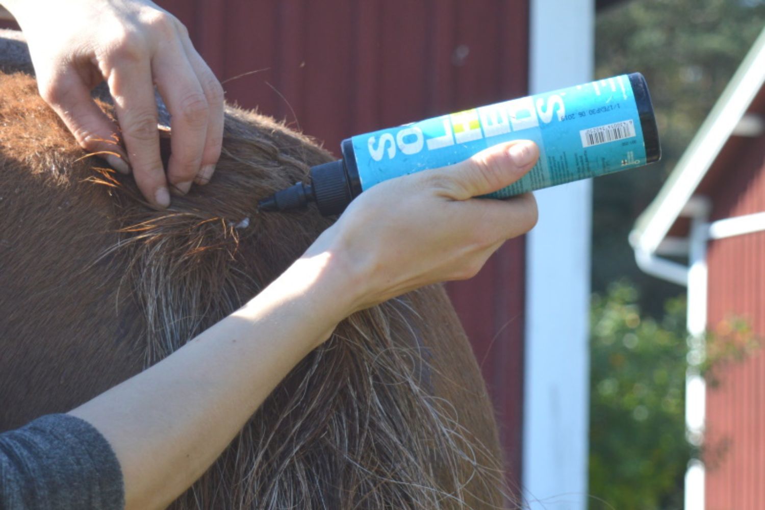 Lokal behandling av hest med sommereksem etter vask